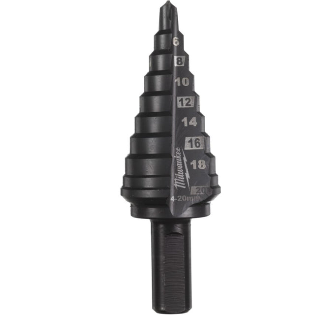 This high-performance step drill is perfect for use on steel and stainless steel, with exceptional durability and precision. An Aluminium Chromium Nitride (AlCrN) coating extends its life up to ten times compared to standard versions. Its RAPID STRIKE TIP and optimised flute design enhance speed and accuracy while minimising the risk of any snagging and damage to the drilled material. The three flat secure grip ensures maximum torque transmission and prevents the step drill from slipping in the chuck. Laser-engraved markings provide long-term visibility for use in hard-wearing conditions. Features and Benefits Extremely hard-wearing, ideal for using on steel and stainless steel An advanced Aluminium Chromium Nitride (AlCrN) coating extends longevity by up to ten times compared to standard versions RAPID STRIKE TIP delivers fast and accurate drilling without the need to pre-drill material Optimised flute design cut faster and smoother while ensuring a jam-free performance Secure grip offers maximum control for better precision Long-term readability with laser-engraved size markings