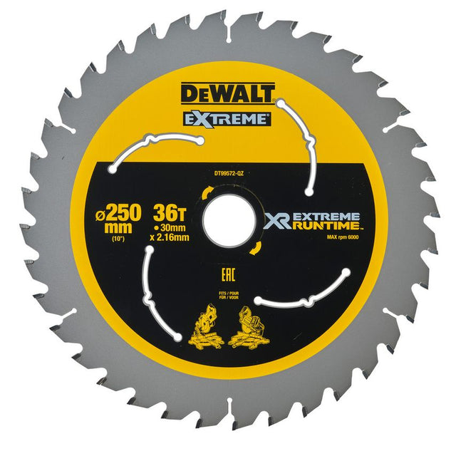 Dewalt DT99572 Extreme Runtime Saw Blade 250mm x 30mm x 36T