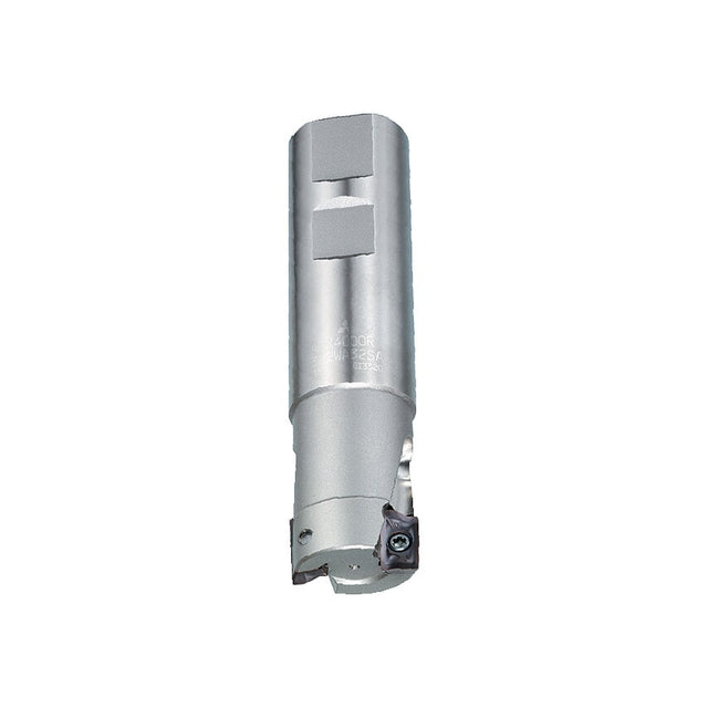 A long cutting edge length arrayed with low resistance inserts enables high efficiency machining even under large depth of cut conditions where vibration is likely to occur. For cutting diameter ? 2 flute type for high tool rigidity and 3 flute type for high efficiency machining are available in cutting length of 56mm. For cutting diameter ? 3 flute type is available in cutting lengths 56mm and 84mm.