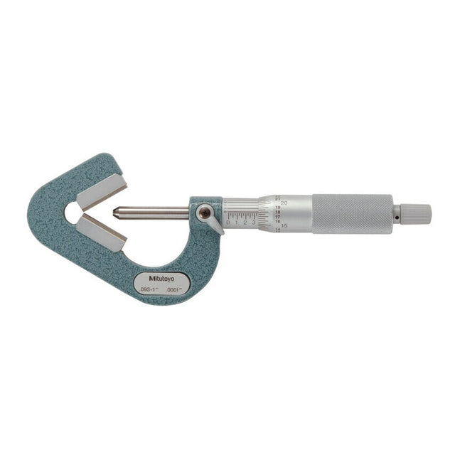 Enamelled Frame . For the measurement of 3 or 5 fluted end mills, taps and reamers etc. Outside diameters can be directly read, or by applying the single wire method pitch diameters can be measured. Also used for checking out of roundness in centreless grinding operations. Positive locking clamp and constant force ratchet. Accuracy: Measuring Faces:1-15mm /-4 mu m, 5-25mm /-4 mu m, 25-45mm /-5 mu m. Flatness:0.3 mu m. Parallelism:(3L/75) mu m. L maximum measuring length. Measurement of Pitch Diameter: Pitch diameter E is given by the following formulae after taking the reading 'M' of micrometer by single wire method.