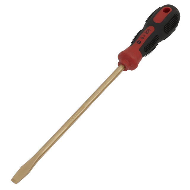 Manufactured from Beryllium Copper. Die Forged. Contoured handle with soft grip to maximize comfort and control. Hanging hole for safe storage.
