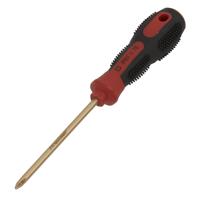 Manufactured from Beryllium Copper. Die forged. Contoured handle with soft grip to maximize comfort and control. Hanging hole for safe storage.