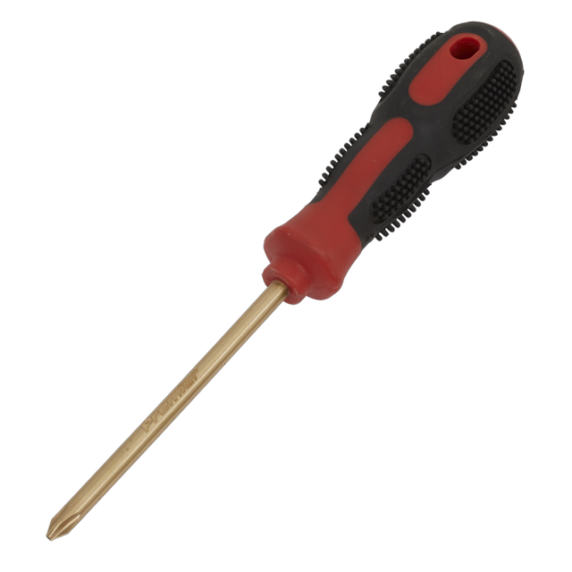 Manufactured from Beryllium Copper. Die forged. Contoured handle with soft grip to maximize comfort and control. Hanging hole for safe storage.