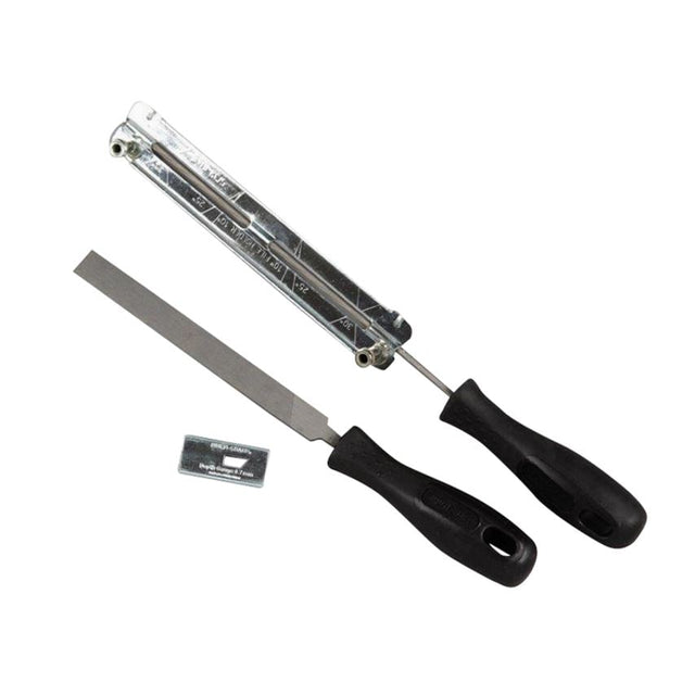 The Multi-Sharp Chainsaw Sharpening Kit restores a sharp new cutting edge to the cutters of the chainsaw, without having to remove the chain. The kit includes a depth gauge and a flat file to maintain the right cutter-to-depth guide height, which is essential for correct chain saw operation. The sharpener/file is 4.0mm (5/32in) in size for chainsaws with a pitch of 1/4in, and 3/8in mini/low profile. This size fits most domestic chainsaws. Suitable for the following makes Black & Decker, Bosch, Champion, Husqvarna, McCulloch, Partner, Makita, Mountfield, Hitachi, Performance Power, Poulain, Remington, Ryobi, Sovereign, Stihl and most other makes. Specifications Size 4.0mm (5/32in). Pitch 1/4 or 3/8in.