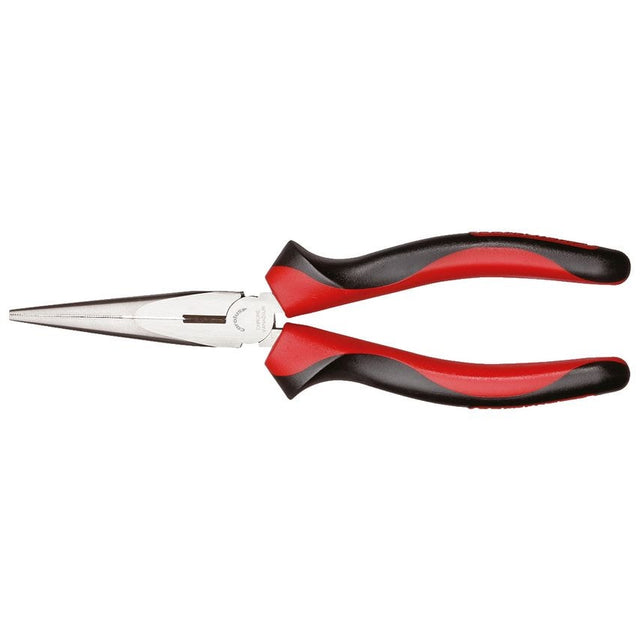 Combined pliers with long, flat-round jaws Versatile grip faces for flat and round workpieces With cutting edge for soft and hard wire and cable 2-component-handles Polished finish