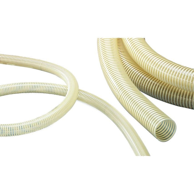 Alimentary suction/discharge hose, PVC inner layer, PVC outer layer, slightly corrugated construction cover, rigid PVC spiral ,with copper stranded wire, smooth interior, Temperature Range -15C to 60C