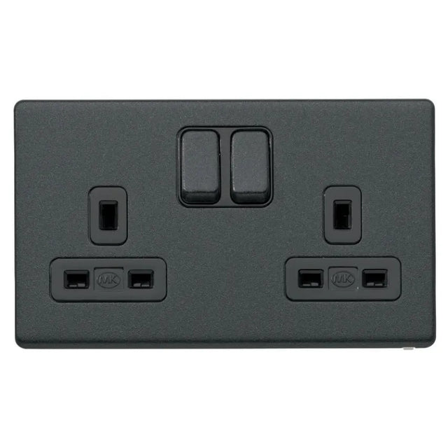 Novar ED&S SOCKET 2 GANG SWITCHED DP 13A LUSTROUS BLACK BLACK INSERT Aspect K24347LBKB