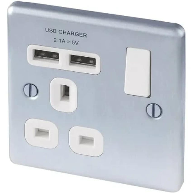 Novar ED&S SKT 1 GANG SWTCHD DP 2A 5V BRSHD STNLSS STL 2 PORT USB CHARG Aspect K24354BSSW