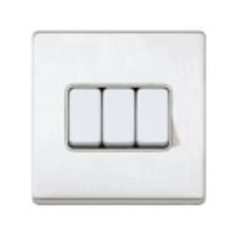 Low stock (10 units)£104.49Unit price /UnavailablePlate Switch 3 Gang 2 Way SP 10A Brushed Stainless Steel White Insert