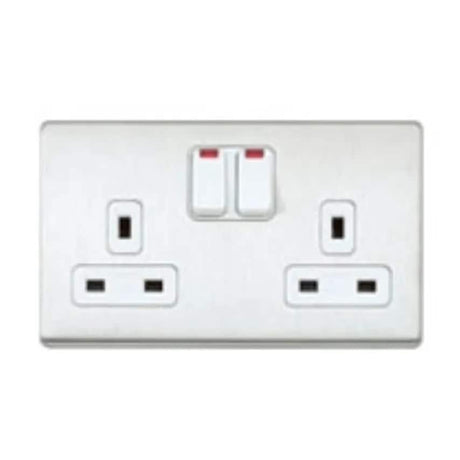 Low stock (10 units)£76.99Unit price /UnavailableSocket 2 Gang Switched DP Dual Earth 13A Lacquered Brushed Steel White