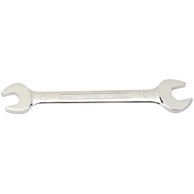 Expert Quality, forged from chrome vanadium steel hardened, tempered, chrome plated and fully polished. Open ends set at 15.