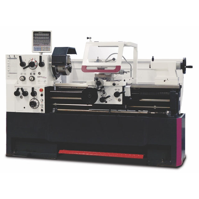 Hardened & ground guideways. Spindle is supported by adjustable precision taper roller bearings. Manufactured to DIN 8606 tool makers precision. Sealed Gearbox. Machine Light. Guaranteed concentricity of spindle nose better than 0.015 mm. DC 24 Volt electric panel. Removable gap bed. Coolant system. Toolpost guard. Footbrake. Emergency foot brake. Chucks & Chuck Guards. Constant lubrication to headstock gears. User friendly DR0 8 digits display, sealed & dazzle free.