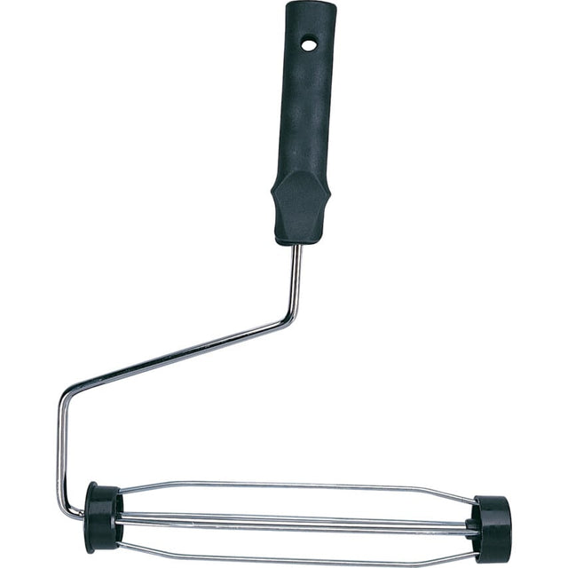Single arm type with moulded black plastic handle. Integral hanging hole for easy storage. For use with roller refill sleeves (not supplied).