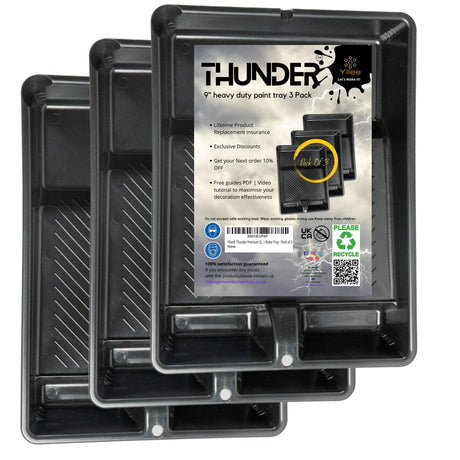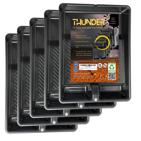 Low stock (10 units)£10.99Unit price /UnavailableThunder Premium Quality 9in Loading Ridge & Profiling Heavy Duty Plastic Paint Roller Tray 5 Pack