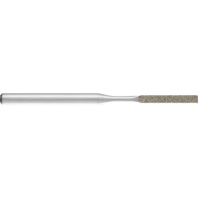 Diamond files and sheets are used for tasks where conventional files fail due to the hardness of the material being worked on. Diamond files and sheets are also used for processing hardened steel. The working temperatures are so low that no chemical wear occurs. This allows the higher hardness of the diamond grain to be exploited for a longer tool life. Diamond files for manual filing tools are suitable for use in machines, as well as for hand filing. The shank diameter of the diamond files is 3mm.