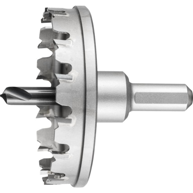 Tungsten carbide hole cutters are professional tools for quick, precise hole-cutting (cut-outs) with a diameter of 16 to 105 mm. They are suitable for working on alloyed and non-alloyed steels, stainless steel (INOX), non-ferrous metals and plastics (including GRP). Tungsten carbide hole cutters are used on hand drills or on stationary machines. PFERD hole cutters have an irregular tooth pitch (distance between teeth) to prevent tool chatter. The flat version (tool height 8 mm) is suitable for work on flat materials up to 4 mm in thickness. The deep version (tool height 35 mm) is suitable for use on curved surfaces and pipe materials. The maximum cutting depth is 32 mm.