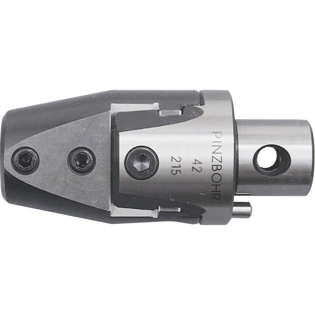 Used in combination with indexable insert I.S.O. boring bars, these units can produce bores down to 5.5mm diameter and up to 34mm diameter. These MICRO heads fit the standard Pinzbohr arbors with connection diameters (SD) of 27, 32 or 42mm. Graduated precision dial readout to 0.01mm.Note: If ground inserts used, please specify left hand for boring. Bores as small as 5.5mm diameter can be produced by using stepped bars.