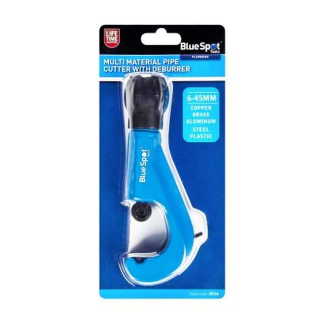The Blue Spot Tools Multi Material Pipe Cutter With Deburring Reamer (6-45mm) is ideal or use deburring or chamfering pipes. For use on 6-45 mm PPR, copper, brass and aluminium tubes. The deburring blade is manufactured from alloy steel. Reamer is used to remove the burr inside metal tubes.