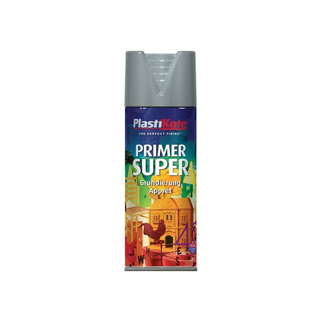 PlastiKote Super Primer Spray is ideal for many applications, both interior and exterior, and is suitable for use on wood or metal. It provides a preparatory coating that allows finishing paint to adhere much better than if it were used alone. Use after initial preparation and prior to the top coat being applied.