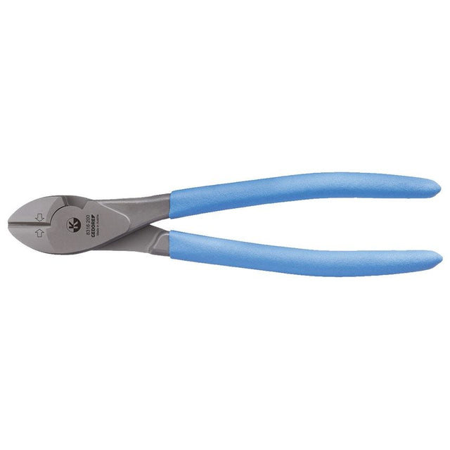 Good lever action for easy cutting Induction-hardened precision cutting edges, hardness 63 - 65 HRC For hard wire/piano wire - values see table Max. cutting capacity 1.4 - 2.0 mm GEDORE special hardened and tempered steel, drop-forged, oil-hardened and annealed JC = chrome-plated, 2-component handles TL = steel-grey, with blue dipped non-slip handles Inductively hardened cutting edges (62 - 64 HRC) ensure constant cutting power over a long time span. Highest cutting performance with less effort due to the optimum interaction of cutting geometry, eccentric rivet bearing and ergonomic handle design.