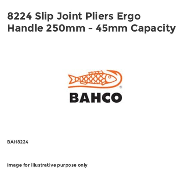 Bahco 82 Series ERGO Slip Joint Pliers with outstanding jaw opening and depth with speedy one hand setting. By pressing the unique thumb operated button the parallel jaws can be adjusted in 9 to 13 positions depending on model. Plastic coated handles for maximum grip and comfort. Parallel specially hardened jaws, with both flat and pipe grip jaws and phosphated and oil-impregnated finish. Developed according to the scientific ERGO process.