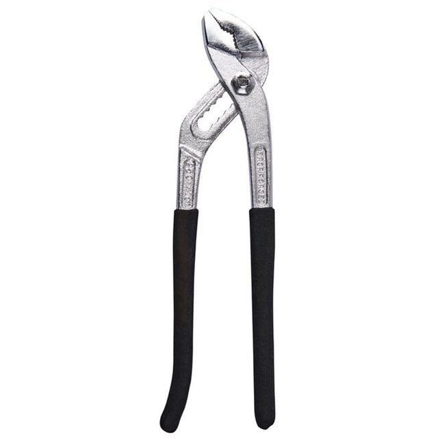 DURABLE: This 250mm (10") water pump plier is made from drop forged and heat treated steel for durability. COMFORTABLE AND EASY TO USE: With matt grip sleeves for a comfort grip, it has serrated gripping jaws and an easily adjustable slip join.