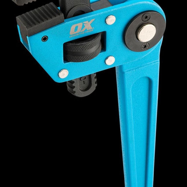 The OX Pro Multi Angle Aluminium Pipe Wrench features a 180 quick action adjustable handle for ultimate flexibility, making to perfect for working in confined spaces. Its fully adjustable jaw with a maximum width of 53mm. This wrench is made from a heavy duty construction of lightweight aluminium that's built to handle prevent hand stress during all-day use.