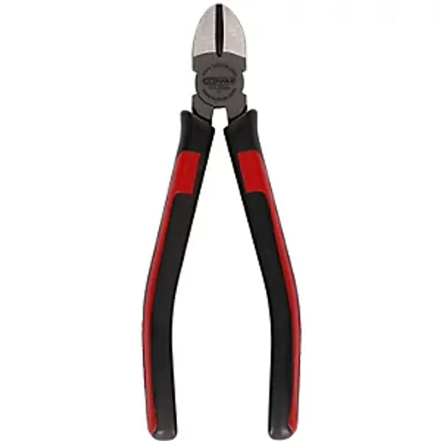 SlimPOWER diagonal side cutter, 2-component handle, length 200 mm. Supplied = assembled. Finish = matt chrome plated. Colour = red/black. Conforms to = DIN ISO 5749. Diameter = 24 mm. Handle = 2-component handle. Cutting length = 22 mm. Head height (A) = 12 mm. Product type = side cutters. Based on DIN ISO 5749. Extra slim design. Long cutting edge. Suitable for different types of wire. Induction hardened precision cutting edge. With a 2-component handle. Matt chrome plated. Special tool steel.