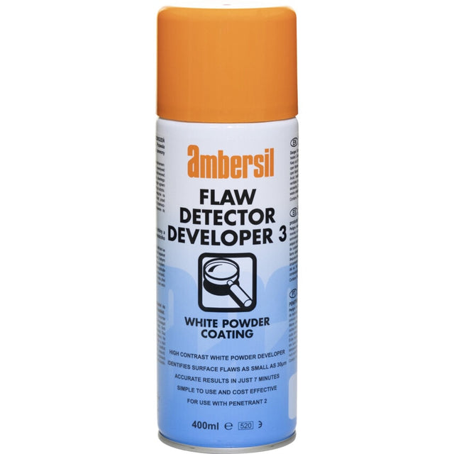 Quick drying solvent cleaner/degreaser and excess penetrant remover for the non-destructive testing of metal surfaces by liquid penetrant inspection. The control is carried out using 3 products: Flaw Detector Cleaner, Flaw Detector Penetrant and Flaw Detector Developer. Flaw Detector Cleaner is a fast drying, powerful degreasing solvent for the removal of dirt, grime and contaminants. Designed for the pre-treatment of the surface, prior to liquid penetrant inspection and to remove all visible, colored traces of the penetrant.