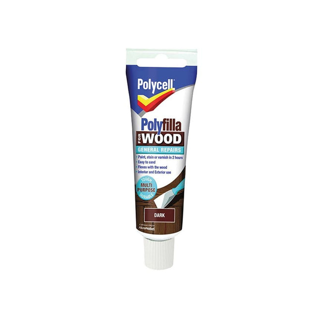 Polycell Polyfilla for Wood is a ready to use, low odour, multi purpose wood filler for general and minor repairs to interior and exterior wood. The formulation is quick drying, giving a tough and durable fill that flexes with the natural movement of wood. Can be painted, stained or varnished in 2 hours (depending on conditions) and fills holes up to 10mm deep in one application. The filler will not shrink or crack, and can be nailed or screwed. It is water resistant, and can be used for interior and exterior use. Polycell Polyfilla For Wood General Repairs Tube. Colour Dark. Size 330g.