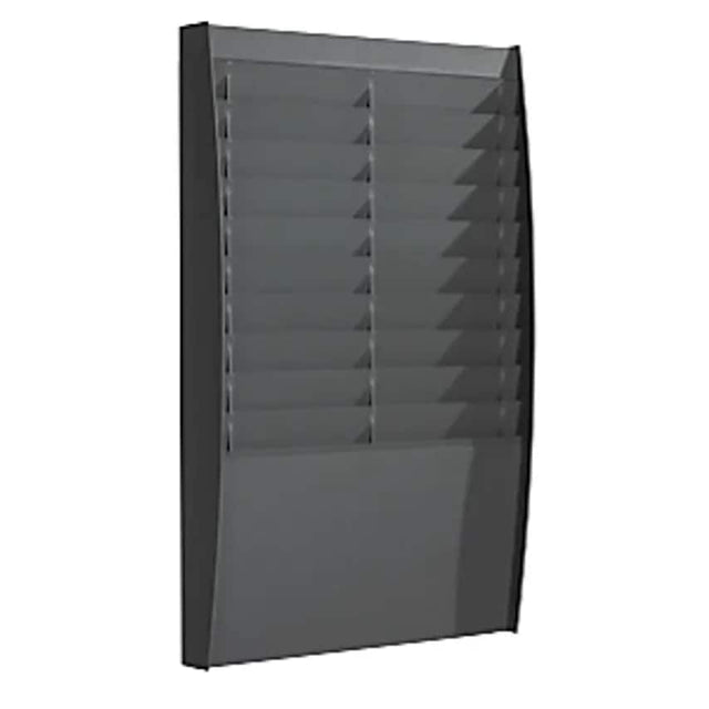 Sorting board, 2 x 10 compartments, HxWxD 865 x 544 x 106 mm, black. Supplied = flat pack. Paper format = A4. Document orientation = vertical. Colour = black. Width = 544 mm. Height = 865 mm. Depth = 106 mm. Number of compartments = 2x10 pcs. Number of rows = 2 pcs. Compartment height = 245 mm. Shelf width = 234 mm. Shelf depth = 10 mm. Housing material = polystyrene. Tray material = polystyrene. With sorting compartments for A4. Made of high quality, scratch and shatterproof polystyrene. Vertically aligned sorting compartments. 2 x 10 index compartments on the side, HxWxD 245 x 30 x 10 mm.
