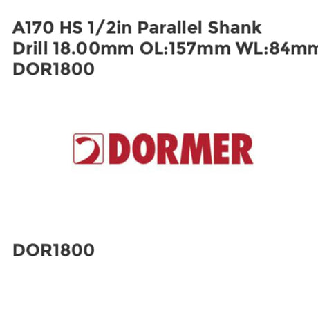 Low stock (10 units)£549.98Unit price /UnavailableA170 HS 1/2in Parallel Shank Drill 18.00mm OL157mm WL84mm DOR1800