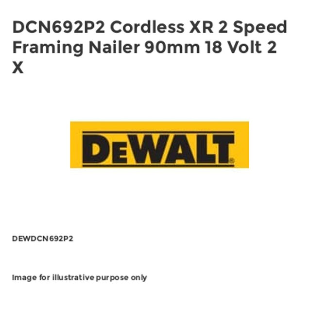 The DEWALT DCN692 Cordless XR First Fix Nailer has two speeds (or power levels) to optimise the nailer for firing all lengths of nails. Its BRUSHLESS motor technology offers the power to fire 90mm ring shank nails into soft wood and 63mm into hard woods. The nailer has two modes. The sequential operating mode allows for precision placement and the bump operating mode provides the user with production speed. Its mechanical rather than gas operation offers consistant performance and minimises cleaning/service requirements. Tool free stall/jam clearance minimises user down time. The DCN692 has a versatile 30-34 magazine angle will accept most clipped head and off centre round head paper tape or wire weld collated framing nails. Depths can be easily adjusted using the thumb wheel depth adjuster. The nailer has excellent vibration and sound figures, which offer fantastic user protection. The tool has an ergonomic design to allow the nailer to fit easily between a 400mm centre stud. A reversable belt/rafter hook povides increased portability and versatility on the job site. Increased visibility and durability along with protection for work-surface from the non-mar contact trip with lock-off to prevent accidental discharge of the fastener. Specifications: Nail Diameter: 2.8-3.3mm.Nail length: 50-90mm.Magazine Capacity: up to 55 nails.Firing mode: Bump and Sequential.Weight: 4.1kg.