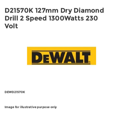 Low stock (10 units)£175.99Unit price /UnavailableD21570K 127mm Dry Diamond Drill 2 Speed 1300Watts 110 Volt