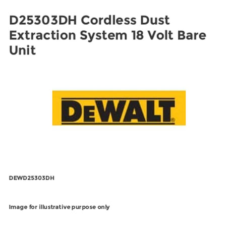 Low stock (10 units)£439.99Unit price /UnavailableD25303DH Cordless Dust Extraction System 18 Volt Bare Unit DEWD25303DH
