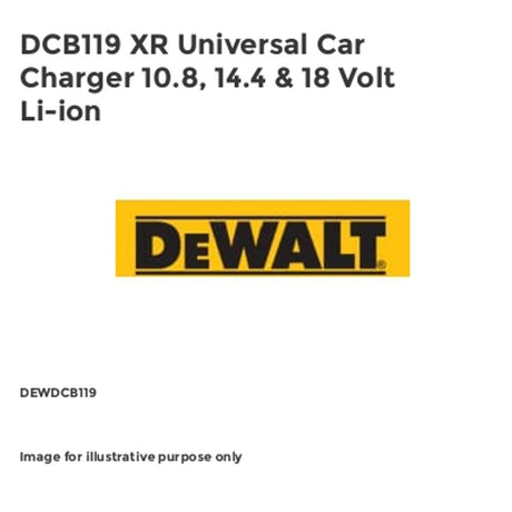 Low stock (10 units)£274.99Unit price /UnavailableDCB119 XR Universal Car Charger 10.8, 14.4 & 18 Volt Li-ion DEWDCB119