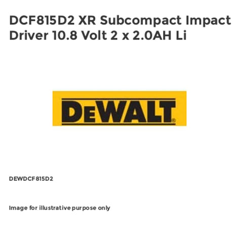 Low stock (10 units)£461.99Unit price /UnavailableDCF815D2 XR Subcompact Impact Driver 10.8 Volt 2 x 2.0AH Li