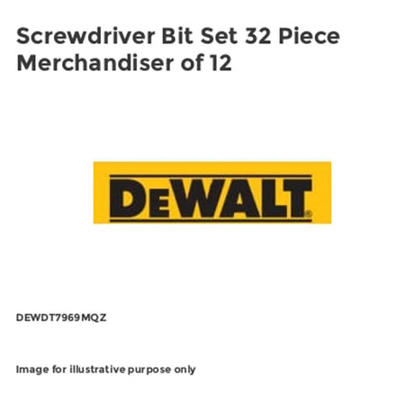 Low stock (10 units)£439.99Unit price /UnavailableDT7969QZ Screwdriver Bit Set 32 Piece DEWDT7969QZ