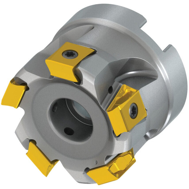 Shoulder mill with double negative geometry utilising 5 double sided inserts. Cutting diameter of 50mm with a 90 approach angle and a 22mm connection bore according to DIN 8030-A. 40mm functional and, through coolant for face milling, shallow shoulder milling, deep shoulder milling, plunge milling and shallow slot milling with a maximum depth of cut of 10mm.