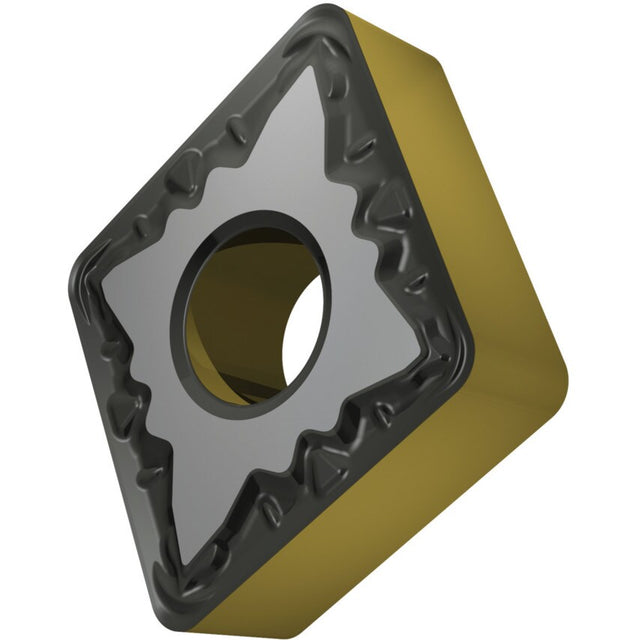 These double-sided 80 rhomboid CNMG turning inserts have a negative insert geometry and were designed for the fine to heavy machining of steels. The inscribed circle has a diameter of 12.7mm, 4.76mm thickness, and 1.2mm nose radius.