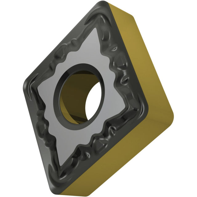 These double-sided 80 rhomboid CNMG turning inserts have a negative insert geometry and were designed for the fine to heavy machining of steels. The inscribed circle has a diameter of 9.525mm, 3.18mm thickness, and 0.8mm nose radius.