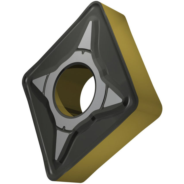 These double-sided 80 rhomboid CNMG turning inserts have a negative insert geometry and were designed for the medium to heavy machining of steels. The inscribed circle has a diameter of 19.05mm, 6.35mm thickness, and 1.6mm nose radius.