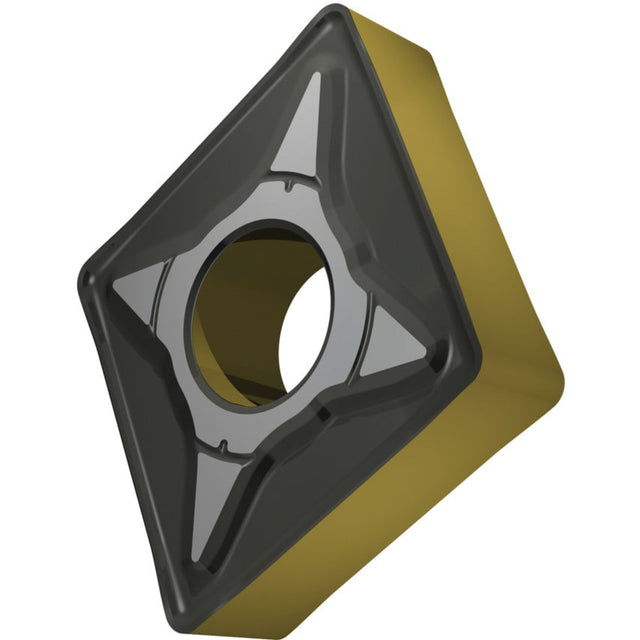 These double-sided 80 rhomboid CNMG turning inserts have a negative insert geometry and were designed for the medium to heavy machining of steels. The inscribed circle has a diameter of 19.05mm, 6.35mm thickness, and 1.2mm nose radius.