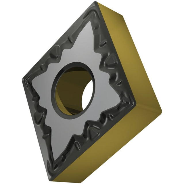 These double-sided 80 rhomboid CNMG turning inserts have a negative insert geometry and were designed for the fine to heavy machining of steels. The inscribed circle has a diameter of 12.7mm, 4.76mm thickness, and 0.4mm nose radius.