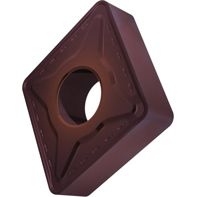 These double-sided 80 rhomboid CNMG turning inserts have a negative insert geometry and were designed for the medium to heavy machining of steels. The inscribed circle has a diameter of 19.05mm, 6.35mm thickness, and 1.6mm nose radius.