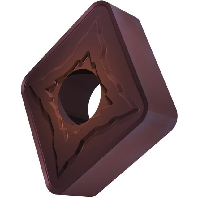 These double-sided 80 rhomboid CNMG turning inserts have a negative insert geometry and were designed for the fine to heavy machining of steels. The inscribed circle has a diameter of 12.7mm, 4.76mm thickness, and 1.6mm nose radius.