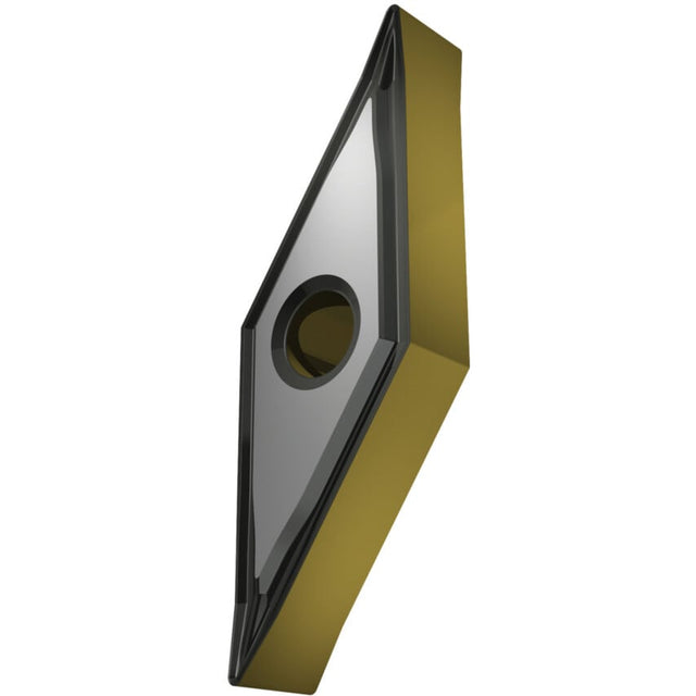 These double-sided rhombic VNMG turning inserts have a negative insert geometry and were designed for the fine to heavy machining of cast steels and steel. The inscribed circle has a diameter of 9.525mm, 4.76mm thickness, and 0.4mm nose radius.
