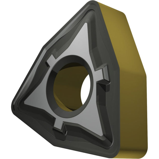 These double-sided trigon WNMG turning inserts have a negative insert geometry and were designed for the fine to heavy machining of cast steels and steel. The inscribed circle has a diameter of 12.7mm, 4.76mm thickness, and a 0.8mm nose radius. Features and Benefits Each insert is of the highest coated turning grade, bringing greater stability and performance in a variety of cutting conditions Thicker coating significantly improves tool durability and increases productivity by allowing for higher cutting speeds Processed post-treatment to improve the toughness and reliability of cutting-edge Typical Applications Cast steel Steel