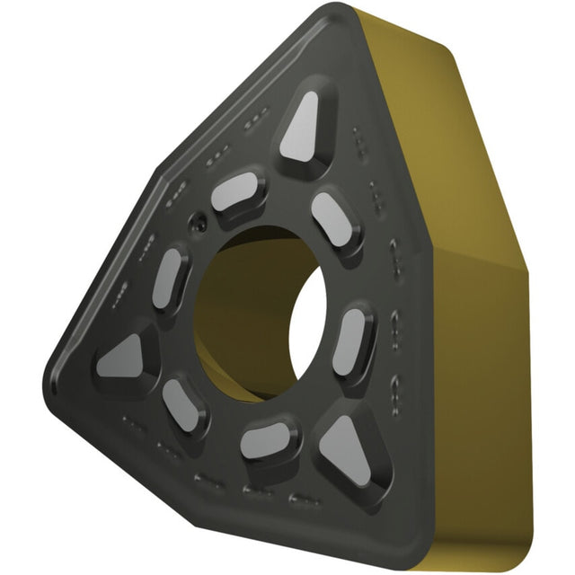 These double-sided trigon WNMG turning inserts have a negative insert geometry and were designed for the fine to heavy machining of cast steels and steel. The inscribed circle has a diameter of 12.7mm, 4.76mm thickness, and 1.2mm nose radius. Features and Benefits Each insert is of the highest coated turning grade, bringing greater stability and performance in a variety of cutting conditions Thicker coating significantly improves tool durability and increases productivity by allowing for higher cutting speeds Processed post-treatment to improve the toughness and reliability of cutting-edge Typical Applications Cast steel Steel Stainless steel