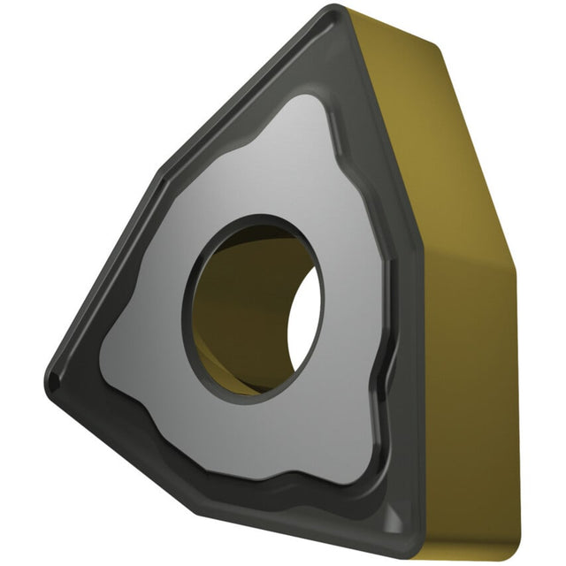 These double-sided trigon WNMG turning inserts have a negative insert geometry and were designed for the fine to heavy machining of cast steels and steel. The inscribed circle has a diameter of 12.7mm, 4.76mm thickness, and a 0.8mm nose radius. Features and Benefits Each insert is of the highest coated turning grade, bringing greater stability and performance in a variety of cutting conditions Thicker coating significantly improves tool durability and increases productivity by allowing for higher cutting speeds Processed post-treatment to improve the toughness and reliability of cutting-edge Typical Applications Cast steel Steel